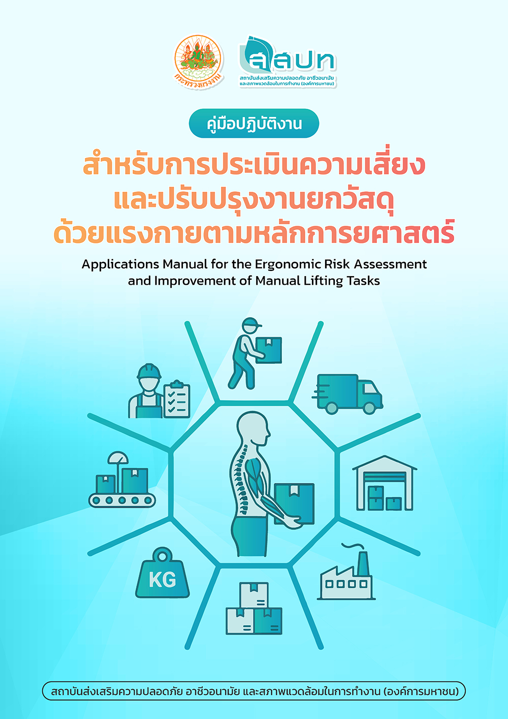 ชื่อหนังสือ : คู่มือปฏิบัติงานสำหรับการประเมินความเสี่ยงและปรับปรุงงานยกวัสดุด้วยแรงกายตามหลักการยศาสตร์