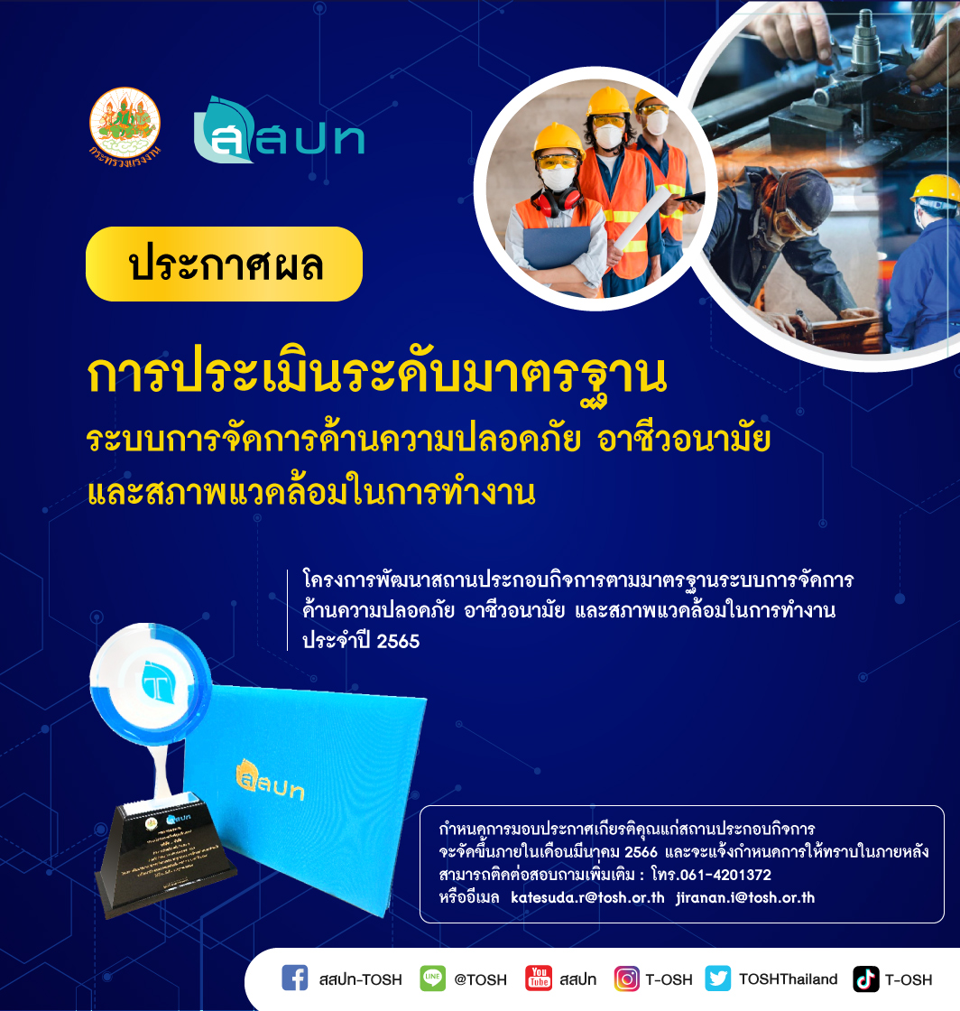 สถาบันส่งเสริมความปลอดภัย อาชีวอนามัย และสภาพแวดล้อมในการทำงาน (องค์การมหาชน) ได้ประกาศมาตรฐานระบบการจัดการด้านความปลอดภัย อาชีวอนามัย และสภาพแวดล้อมในการทำงาน เพื่อส่งเสริมให้สถานประกอบกิจการจัดทำระบบการจัดการด้านความปลอดภัย อาชีวอนามัย และสภาพแวดล้อมในการทำงานได้อย่างมีประสิทธิภาพและยั่งยืน สามารถต่อยอดหรือยกระดับสู่มาตรฐานสากลได้