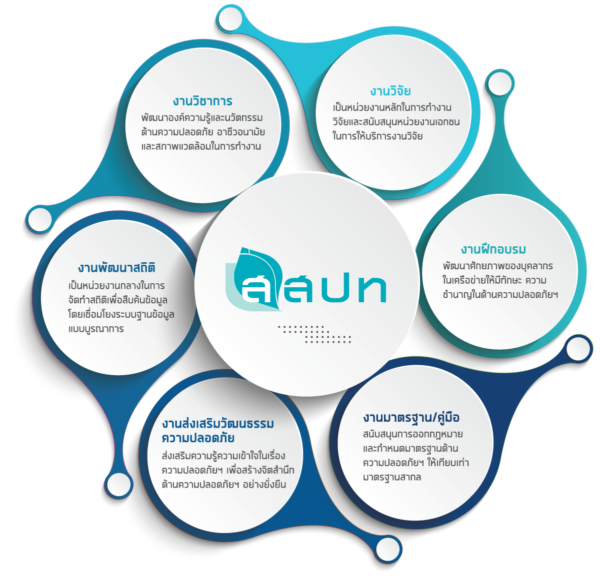 เป็นองค์กรหลักด้านการส่งเสริมและสร้างนวัตกรรม ความปลอดภัย อาชีวอนามัย และสภาพแวดล้อมในการทำงาน เพื่อยกระดับคุณภาพชีวิตสู่วัฒนธรรมความปลอดภัย