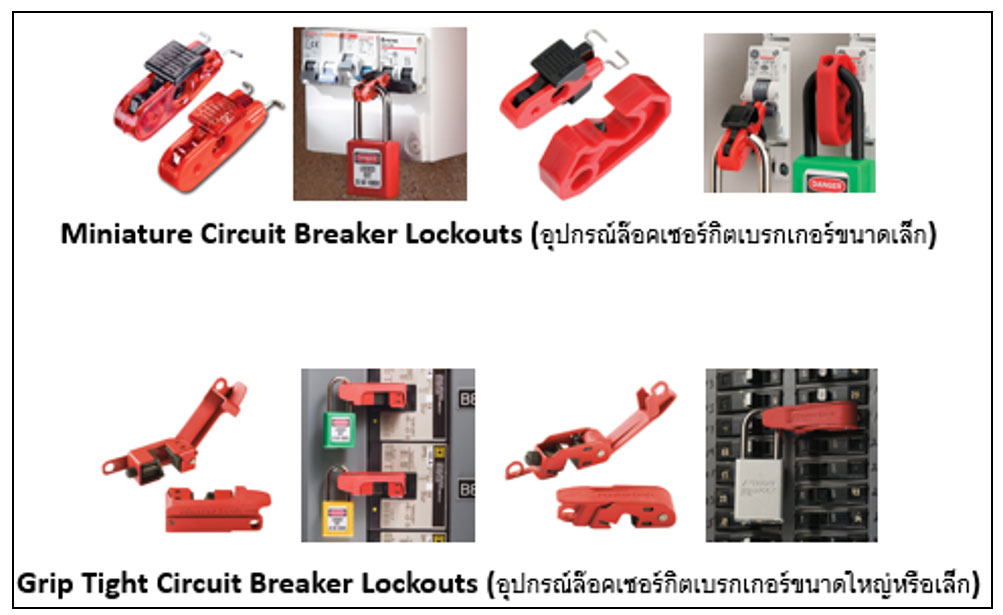 รูปแสดงตัวอย่างอุปกรณ์การล็อกเซอร์กิตเบรกเกอร์ (Electrical Lockout)