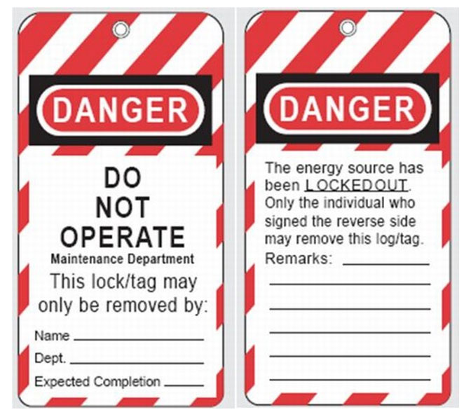 รูปแสดงตัวอย่างป้ายเตือน (Tagout)