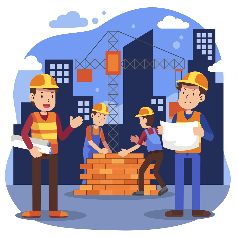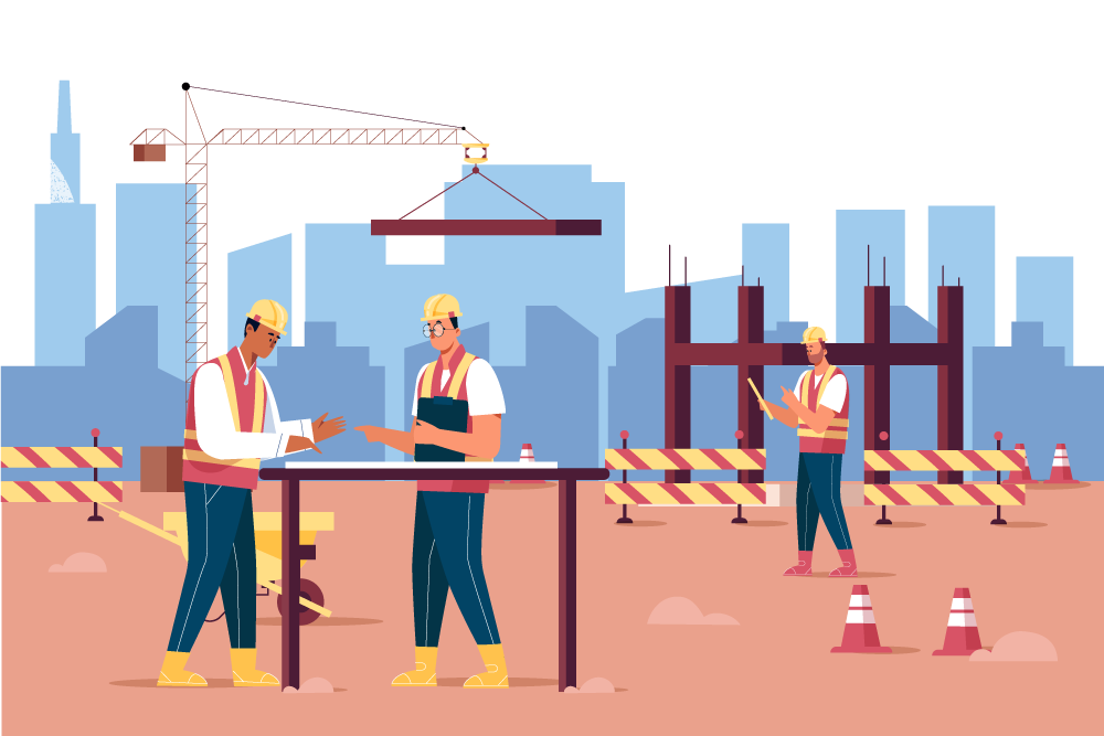 ชาย 2 คนทำงานในพื้นที่ก่อสร้าง