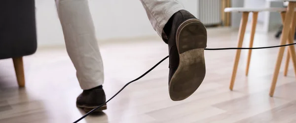 - น้ำหกอยู่บนทางเดินในไลน์การผลิต คนงานเดินผ่าน เหยียบน้ำเกือบลื่นหกล้ม