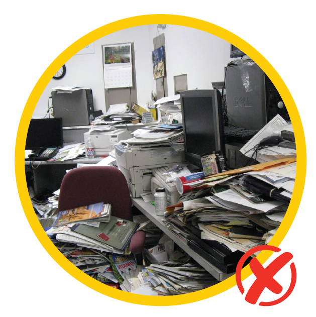 ไม่วางกองเอกสาร สิ่งที่ติดไฟง่ายใกล้แผงสวิตช์ ปลั๊กไฟฟ้า ไม่มีการเก็บพวกน้ำมัน,สารไวไฟไว้ในอาคาร