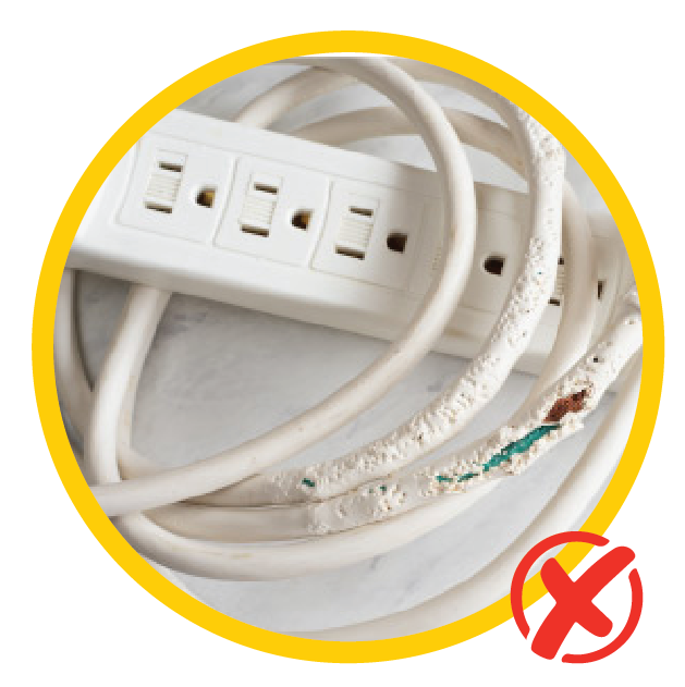 • สายไฟฟ้าอยู่ในสภาพดี ไม่หักงอ บวม หรือฉนวนฉีกขาด