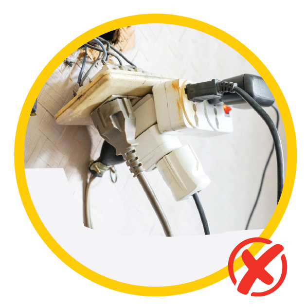ไม่มีการต่อพ่วงสายไฟไปใช้งานอย่างไม่ปลอดภัย (เดินสายไฟฟ้าเอง โดยไม่ใช้ช่าง)