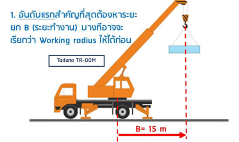 1.อันดับแรกสำคัญที่สุดต้องหาระยะยก B (ระยะทำงาน) บางทีอาจเรียกว่า Working radius ให้ได้ก่อน