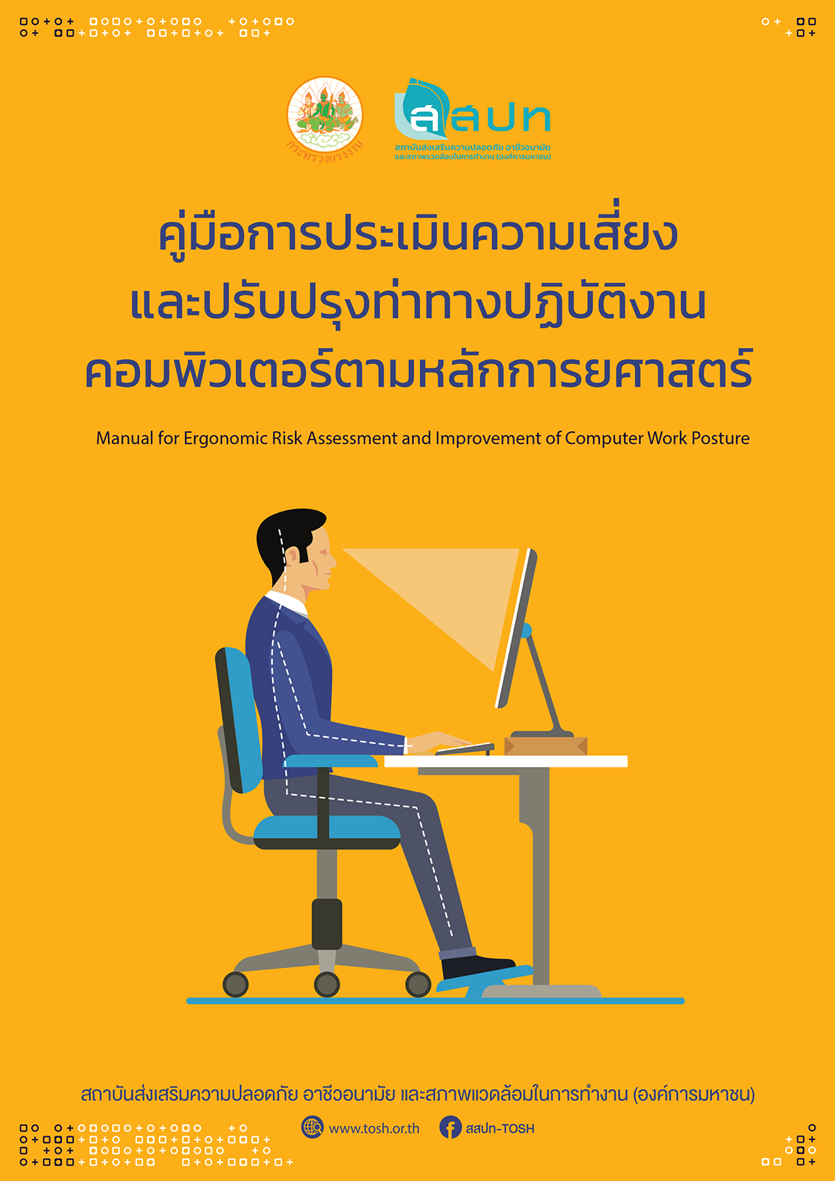 ชื่อหนังสือ : คู่มือการประเมินความเสี่ยงและปรับปรุงท่าทางปฏิบัติงานคอมพิวเตอร์ตามหลักการยศาสตร์ (Manual for Ergonomic Risk Assessment and Improvement of Computer Work Posture)