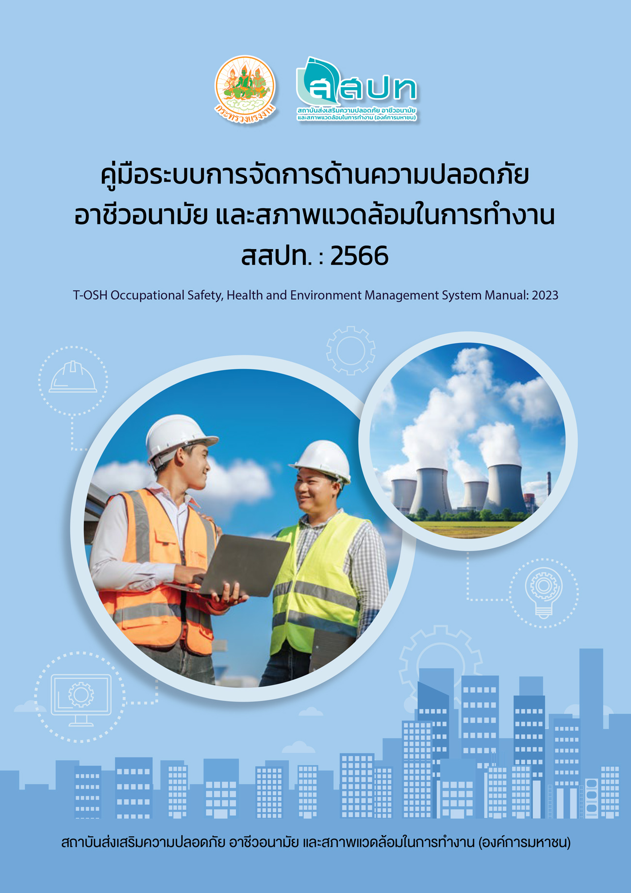 ชื่อหนังสือ : คู่มือระบบการจัดการด้านความปลอดภัย อาชีวอนามัย และสภาพแวดล้อมในการทำงาน สสปท : 2566 (T-OSH Occupational Safety, Health and Environment Management System Manual: 2023)