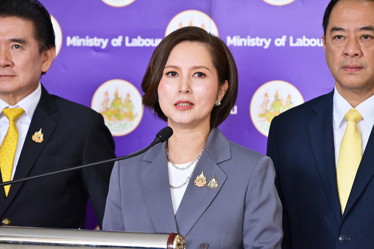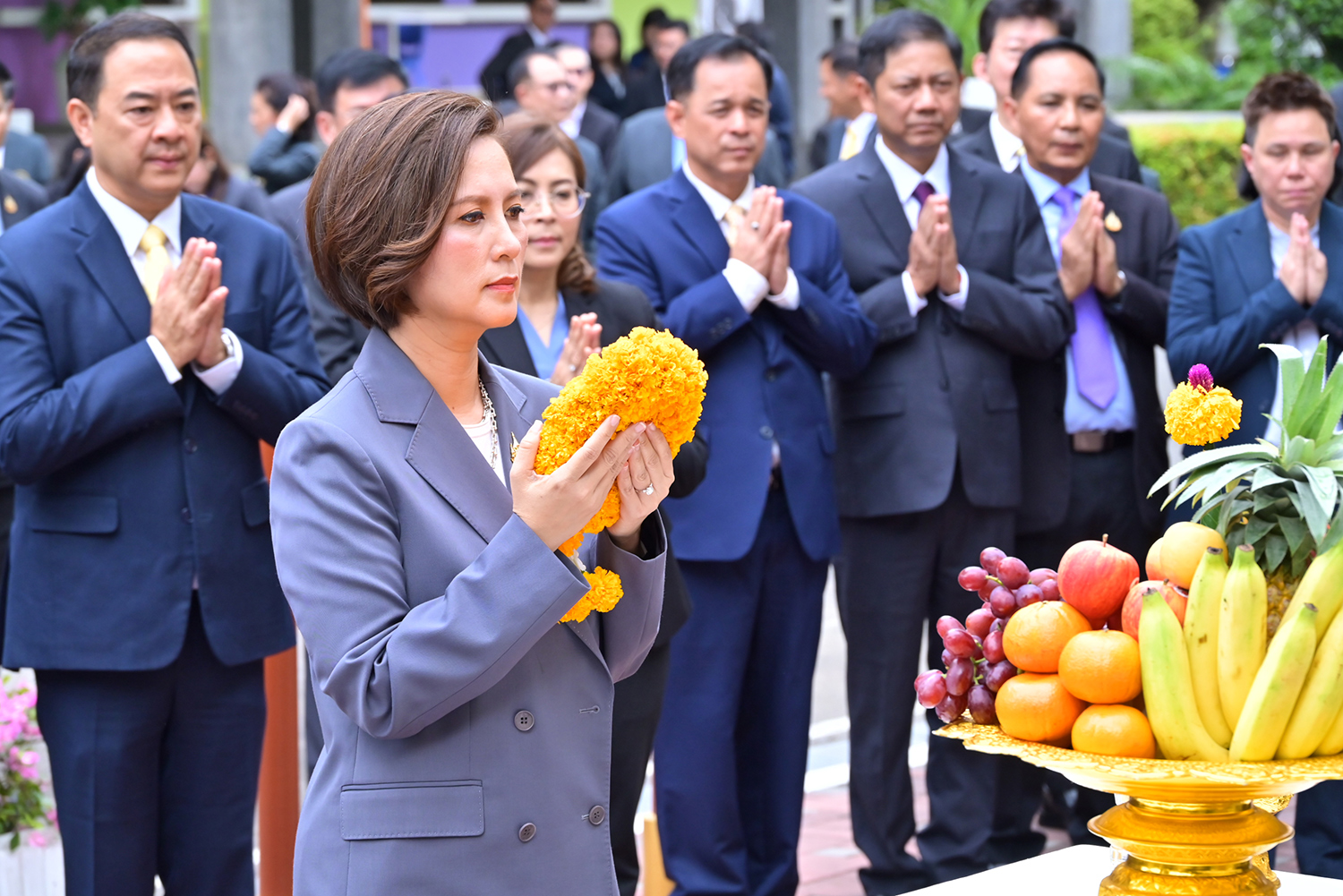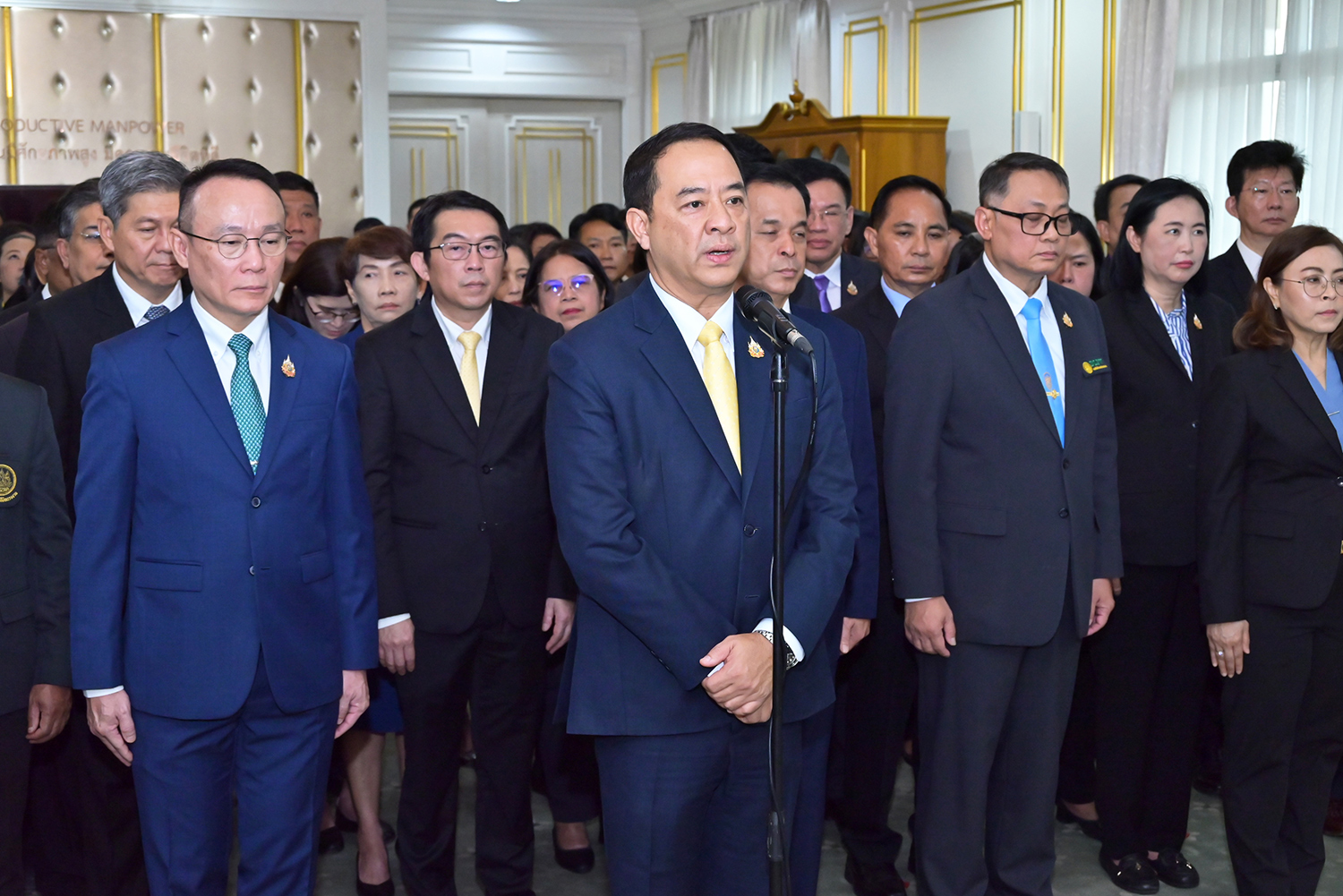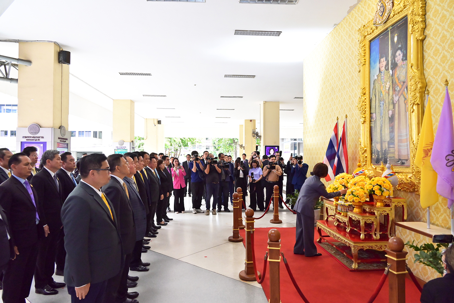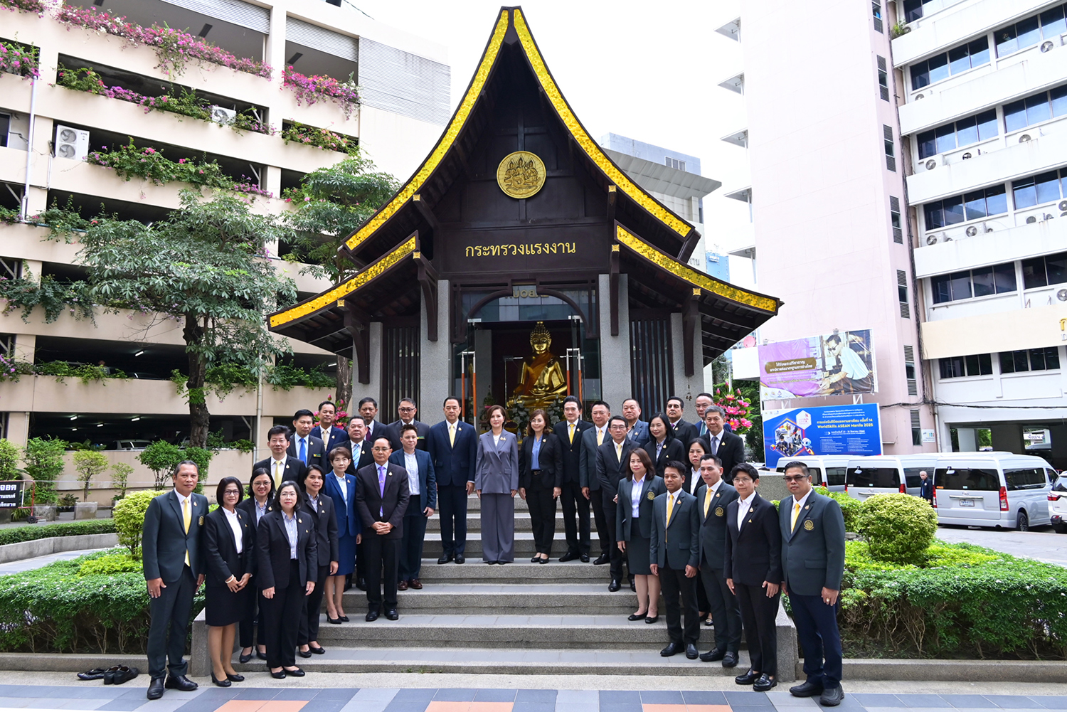 วันที่ 26 กันยายน 2568 เวลา 09.09 น. นางสาวตรีนุช เทียนทอง รัฐมนตรีว่าการกระทรวงแรงงาน เดินทางมายังกระทรวงแรงงาน เพื่อสักการะสิ่งศักดิ์สิทธิ์ประจำกระทรวงแรงงาน ประกอบด้วย พระพุทธสุทธิธรรมบพิตร พระพุทธชินราช ศาลพ่อปู่ชัยมงคล ศาลท้าวมหาพรหมเทวฤทธิ์ และศาลพ่อปู่ชินพรหมมา เนื่องในโอกาสรับตำแหน่งรัฐมนตรีว่าการกระทรวงแรงงาน คนที่ 19 และถวายความเคารพหน้าพระบรมฉายาลักษณ์พระบาทสมเด็จพระเจ้าอยู่หัว และสมเด็จพระนางเจ้า ฯ พระบรมราชินี โดยมี นายสมาสภ์ ปัทมะสุคนธ์ รองปลัดกระทรวงแรงงาน ดร.นันทชัย ปัญญาสุรฤทธิ์ ผู้อำนวยการสถาบันส่งเสริมความปลอดภัย อาชีวอนามัย และสภาพแวดล้อมในการทำงาน ผู้บริหารระดับสูง ข้าราชการ และเจ้าหน้าที่กระทรวงแรงงาน ร่วมให้การต้อนรับอย่างอบอุ่น ณ กระทรวงแรงงาน
