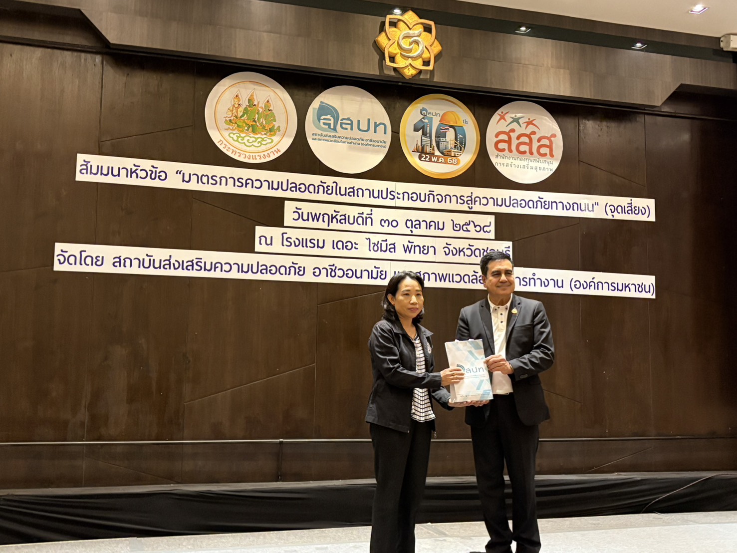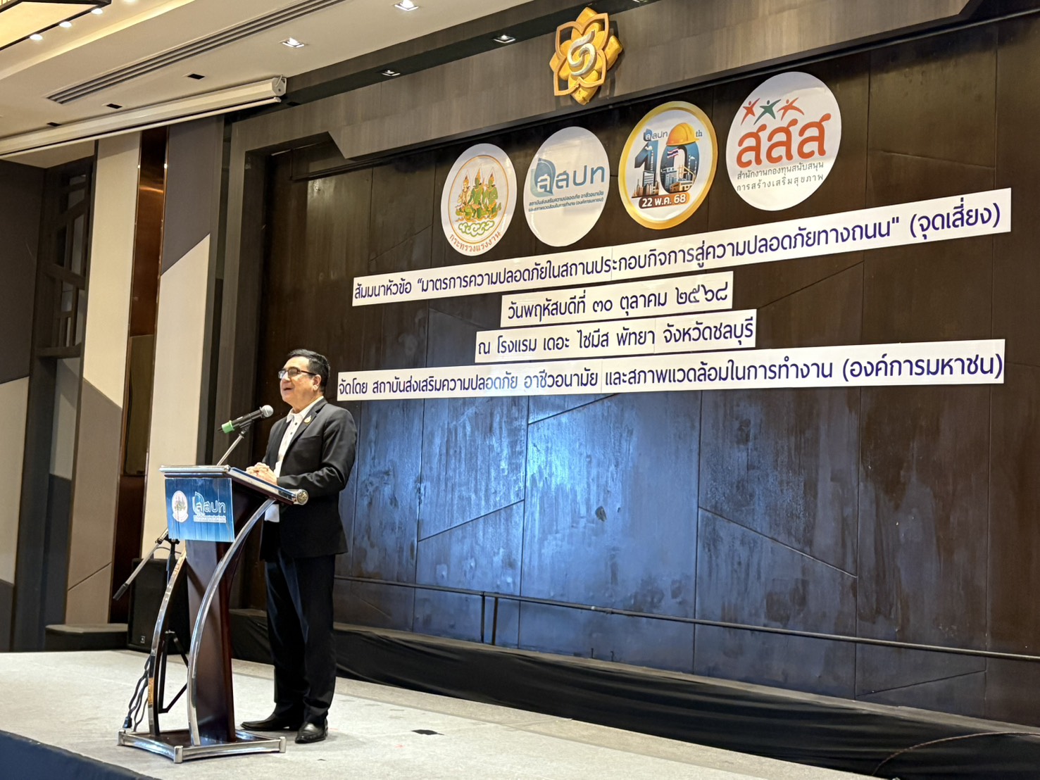 วันที่ 30 ตุลาคม 2568 เวลา 09.00 น. ดร.นันทชัย ปัญญาสุรฤทธิ์ ผู้อำนวยการสถาบันส่งเสริม ความปลอดภัย อาชีวอนามัย และสภาพแวดล้อมในการทำงาน เป็นประธานในพิธีเปิดการสัมมนา เชิงวิชาการ หัวข้อ “มาตรการความปลอดภัยในสถานประกอบกิจการ สู่ความปลอดภัยทางถนน (จุดเสี่ยง)” ณ ห้องดาวส์ดึง 1 ชั้น 7 โรงแรมเดอะ ไซมีส พัทยา จ.ชลบุรี โดยมี นายแพทย์อนุชา เศรษฐเสถียร ผู้จัดการแผนงานสนับสนุนการป้องกันอุบัติเหตุจราจรระดับจังหวัด (สอจร.) และ รศ.ดร.นันทพร ภัทรพุทธ อาจารย์ประจำคณะสาธารณสุขศาสตร์ สาขาวิชาสุขศาสตร์อุตสาหกรรมและความปลอดภัย มหาวิทยาลัย บูรพา เป็นวิทยากร