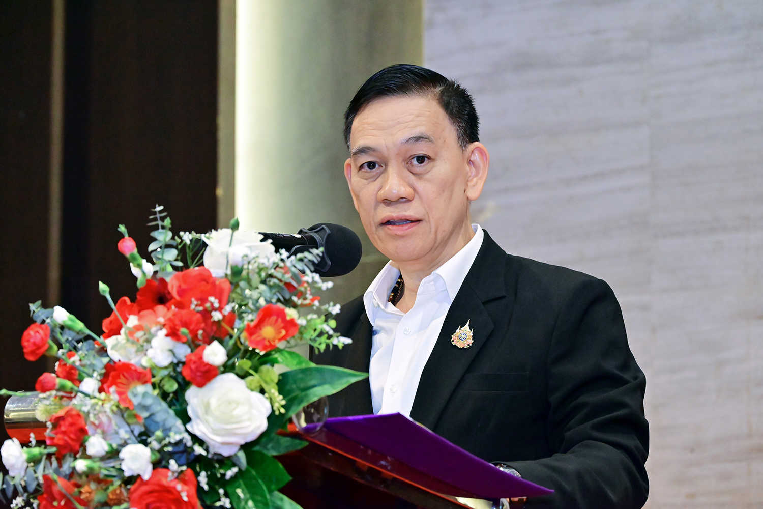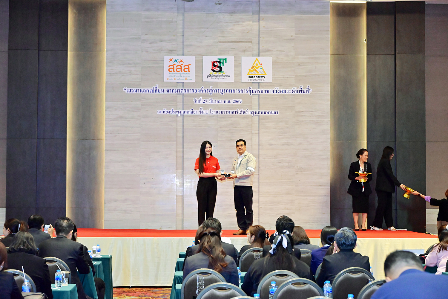ผู้อำนวยการ สสปท. กล่าวนโยบายของ สสปท. ในการสนับสนุนการขับเคลื่อนมาตรการองค์กรความปลอดภัยทางถนนฯ และมอบโล่ สปก.
