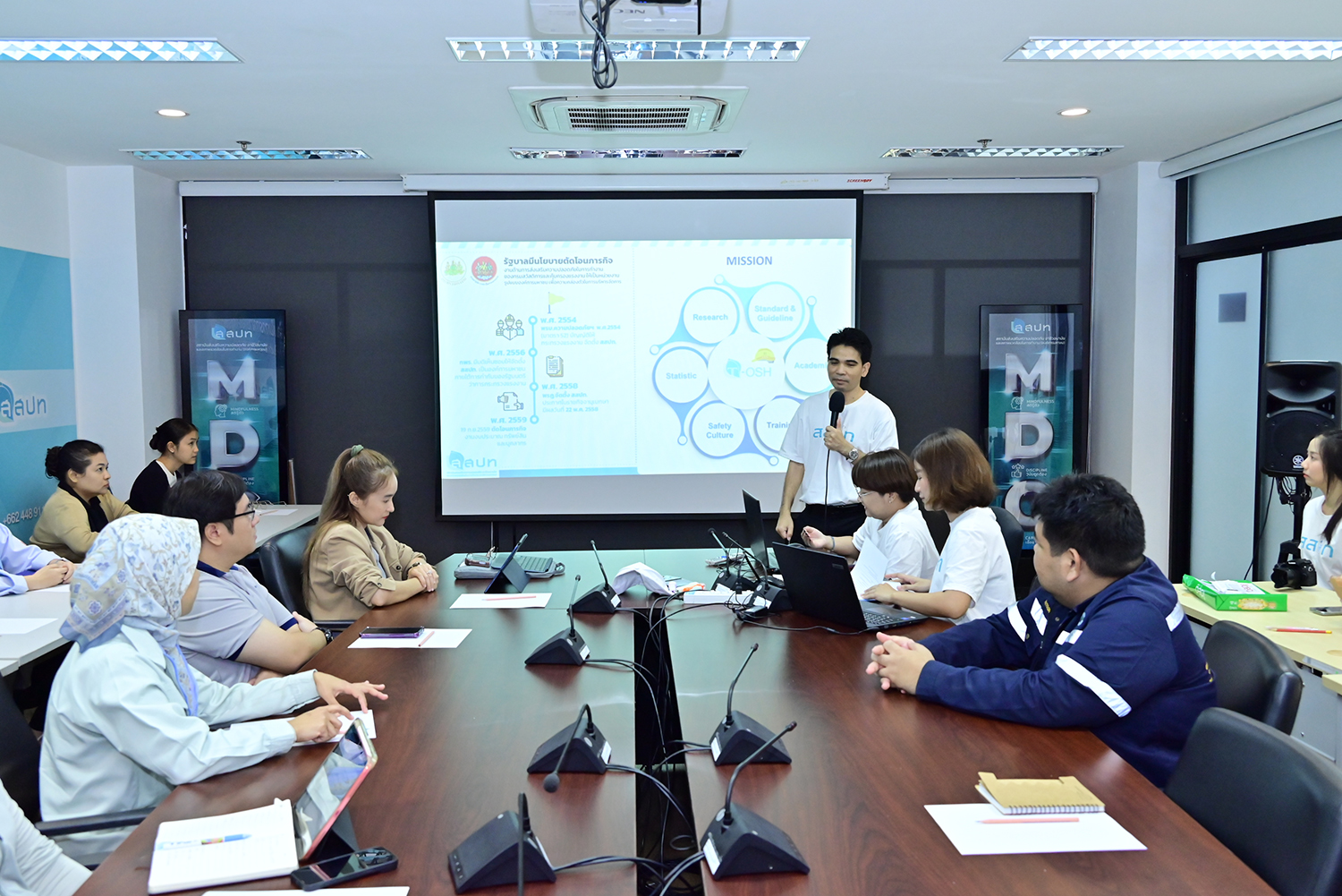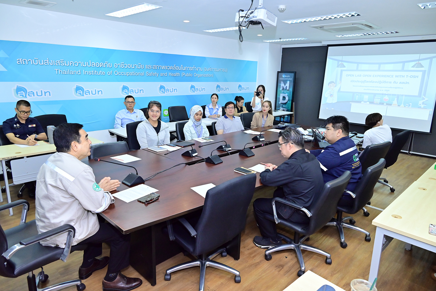 วันที่ 27 เมษายน 2569 เวลา 09.30 น. ดร.นันทชัย ปัญญาสุรฤทธิ์ ผู้อำนวยการสถาบันส่งเสริมความปลอดภัย อาชีวอนามัย และสภาพแวดล้อมในการทำงาน กล่าวเปิดกิจกรรม Open Lab Open Experience with T-OSH เปิดประตูสู่โลกห้องปฏิบัติการ กับ สสปท. ประจำปี พ.ศ. 2569 รุ่นที่ 2 ณ ห้องประชุม 1 ชั้น 2 อาคารกรมสวัสดิการและคุ้มครองแรงงาน (ส่วนแยกตลิ่งชัน) กรุงเทพมหานคร กิจกรรมดังกล่าว สสปท. จัดขึ้นเพื่อสร้างกระบวนการเรียนรู้ การถ่ายทอดและแลกเปลี่ยนองค์ความรู้ที่เกี่ยวข้องกับห้องปฏิบัติการทางสุขศาสตร์อุตสาหกรรมและการวิเคราะห์ทางเคมี โดยผู้เข้าร่วมกิจกรรมสามารถนำความรู้เกี่ยวกับข้อปฏิบัติด้านความปลอดภัยของห้องปฏิบัติการ การตรวจวัดและการวิเคราะห์สภาะการทำงานด้าน ความร้อน แสงสว่าง เสียง ฝุ่น และไอระเหยสารเคมี รวมทั้งแนวทางการรายงานผลเพื่อปรับปรุงแก้ไขให้มีสภาพแวดล้อมการทำงานที่ปลอดภัย
