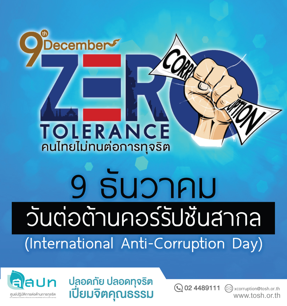 สำนักงาน ป.ป.ช. ร่วมกับสำนักงาน ป.ป.ท. องค์กรต่อต้านคอร์รัปชันประเทศไทย (ACT) จัดกิจกรรมเนื่องในวันต่อต้านคอร์รัปชันสากล (ประเทศไทย) ขึ้น ภายใต้แนวคิด “Zero Tolerance คนไทยไม่ทนต่อการทุจริต” ในวันพุธที่ 9 ธันวาคม 2563 ณ ห้องนนทบุรี 1 อาคาร 4 สำนักงาน ป.ป.ช. โดยปรับรูปแบบให้เหมาะสมกับสถานการณ์ ด้วยการจัดงานในรูปแบบผสมผสาน (Hybrid Event) คือการจัดงานในรูปแบบปกติและในรูปแบบออนไลน์ และในวันเดียวกันนี้ สสปท. ได้จัดให้ผู้บริหารและเจ้าหน้าที่เข้าร่วมชมและรับฟังกิจกรรมวันต่อต้านคอร์รัปชันสากล (ประเทศไทย) ในวันที่ 9 ธันวาคม 2563 ตั้งแต่เวลา 09.00 – 10.30 น. ณ ห้องประชุม สสปท. ผ่านช่องทาง Facebook Live เพจ สำนักงาน ป.ป.ช.
