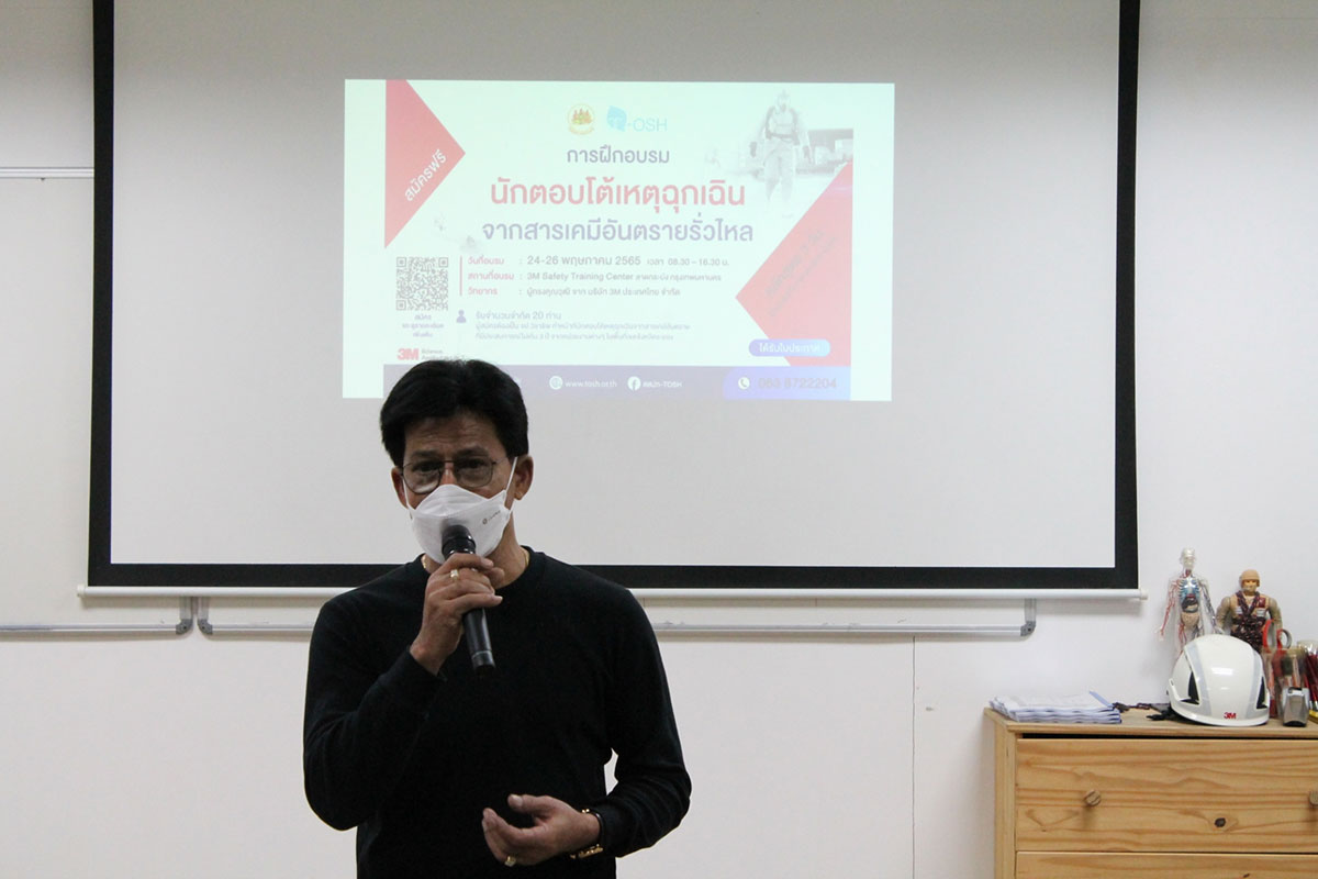 วันที่ 24 พฤษภาคม 2565 สถาบันส่งเสริมความปลอดภัย อาชีวอนามัย และสภาพแวดล้อมในการทำงาน (องค์การมหาชน) โดย ศูนย์ส่งเสริมความปลอดภัยและอาชีวอนามัยภูมิภาคตะวันออก (Occupational Safety and Health Center in Eastern Thailand : OSHCET) จัดฝึกอบรม : "นักตอบโต้เหตุฉุกเฉินจากสารเคมีอันตรายรั่วไหล" โดยเป็นการฝึกอบรมทั้งภาคทฤษฎีและปฏิบัติเป็นเวลา 3 วัน (วันที่ 24-26 พฤษภาคม 2565) ผู้เข้าอบรมประกอบด้วยเจ้าหน้าที่ความปลอดภัยระดับวิชาชีพที่อยู่ในพื้นที่จังหวัดระยอง จำนวนจำกัด 20 คน