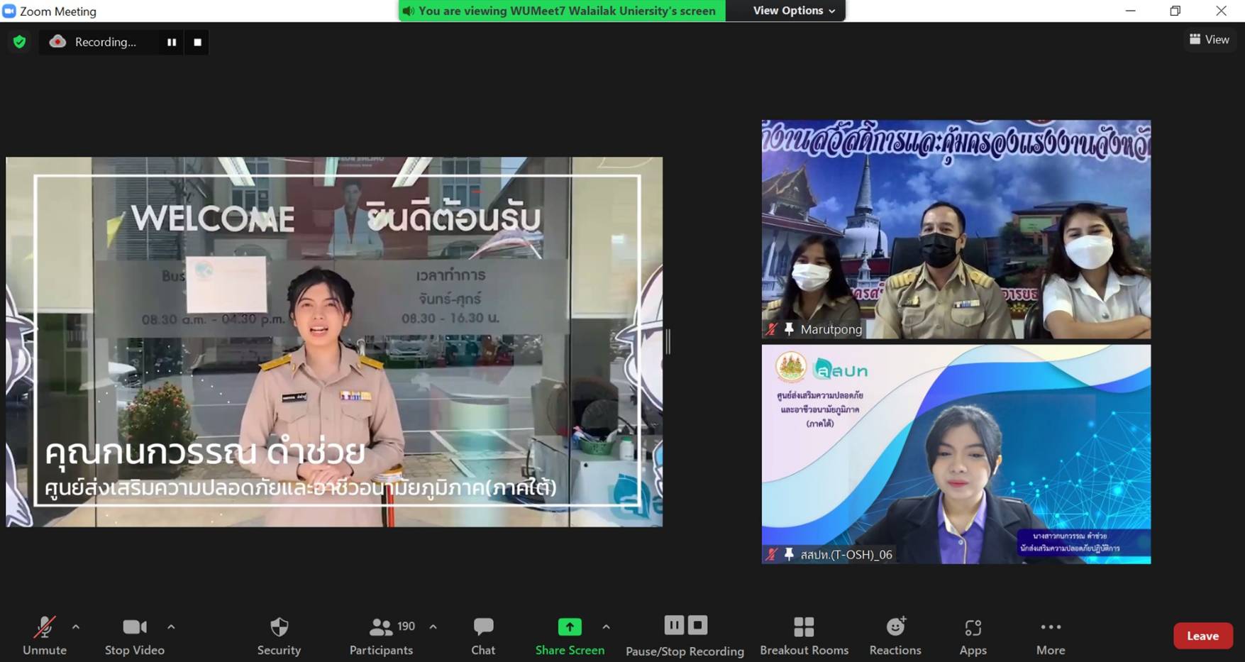 วันที่ 11 กุมภาพันธ์ 2565 ศูนย์ส่งเสริมความปลอดภัยและอาชีวอนามัยภูมิภาค (ภาคใต้) โดยนางสาวกนกวรรณ ดำช่วย นักส่งเสริมความปลอดภัยปฏิบัติการ เป็นวิทยากรบรรยาย หัวข้อ “เส้นทางวิชาชีพทางด้านอาชีวอนามัยและความปลอดภัย” ให้กับนักศึกษาชั้นปีที่ 1 สาขาอาชีวอนามัยและความปลอดภัย สำนักวิชาการสาธารณสุขศาสตร์ มหาวิทยาลัยวลัยลักษณ์ ในรูปแบบออนไลน์