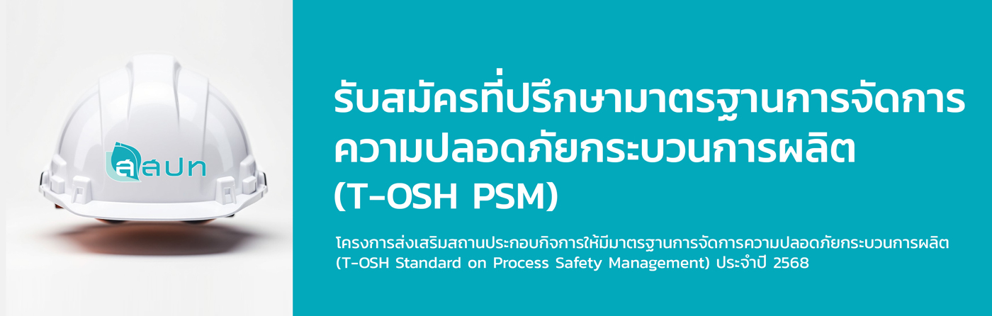 สสปท. รับสมัครที่ปรึกษามาตรฐานการจัดการความปลอดภัยกระบวนการผลิต (T-OSH PSM) โครงการส่งเสริมสถานประกอบกิจการให้มีมาตรฐานการจัดการความปลอดภัยกระบวนการผลิต (T-OSH Standard on Process Safety Management) ประจำปี 2568