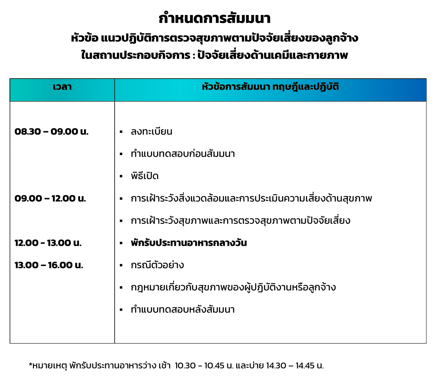 • ผู้เข้าสัมมนาลงทะเบียนก่อนเข้าสัมมนา (เช้า - บ่าย) และรับเอกสารบรรยาย ณ สถานที่จัดสัมมนา
