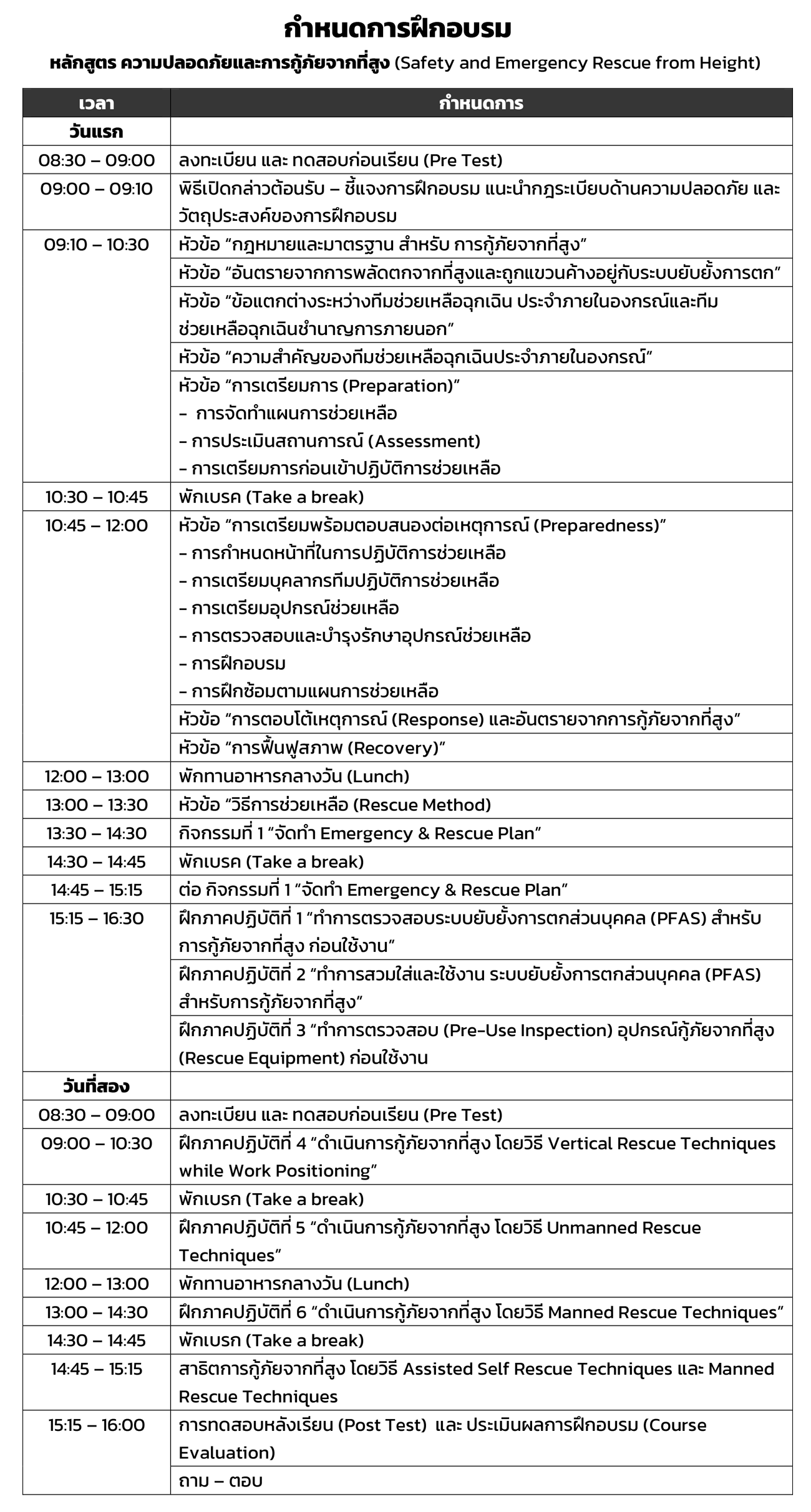 • มีทักษะในการปฏิบัติงานและช่วยเหลือกู้ภัยจากที่สูงได้อย่างปลอดภัย