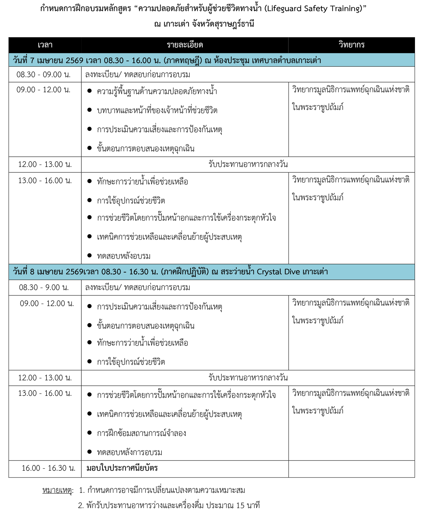 หลักสูตรความปลอดภัยสำหรับผู้ช่วยชีวิตทางน้ำ
