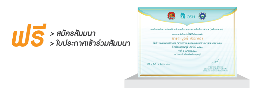 สถาบันฯ จึงขอเรียนเชิญท่านเข้าร่วมงานและสัมมนาวิชาการ เพื่อเพิ่มพูนความรู้ในเรื่องความปลอดภัยฯ และเป็นกิจกรรมหนึ่งที่มุ่งหวังให้ทุกภาคส่วนได้ร่วมกันสร้างสรรค์วัฒนธรรมความปลอดภัยเชิงป้องกัน ทั้งนี้ท่านสามารถสมัครเข้าร่วมสัมมนาวิชาการฟรี ตามรายละเอียดด้านล่างนี้