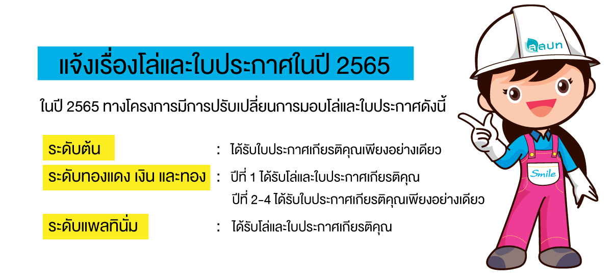 ระดับ Platinum สถานประกอบกิจการได้รับประกาศเกียรติคุณในระดับทองติดต่อกันเป็นเวลา 5 ปี |