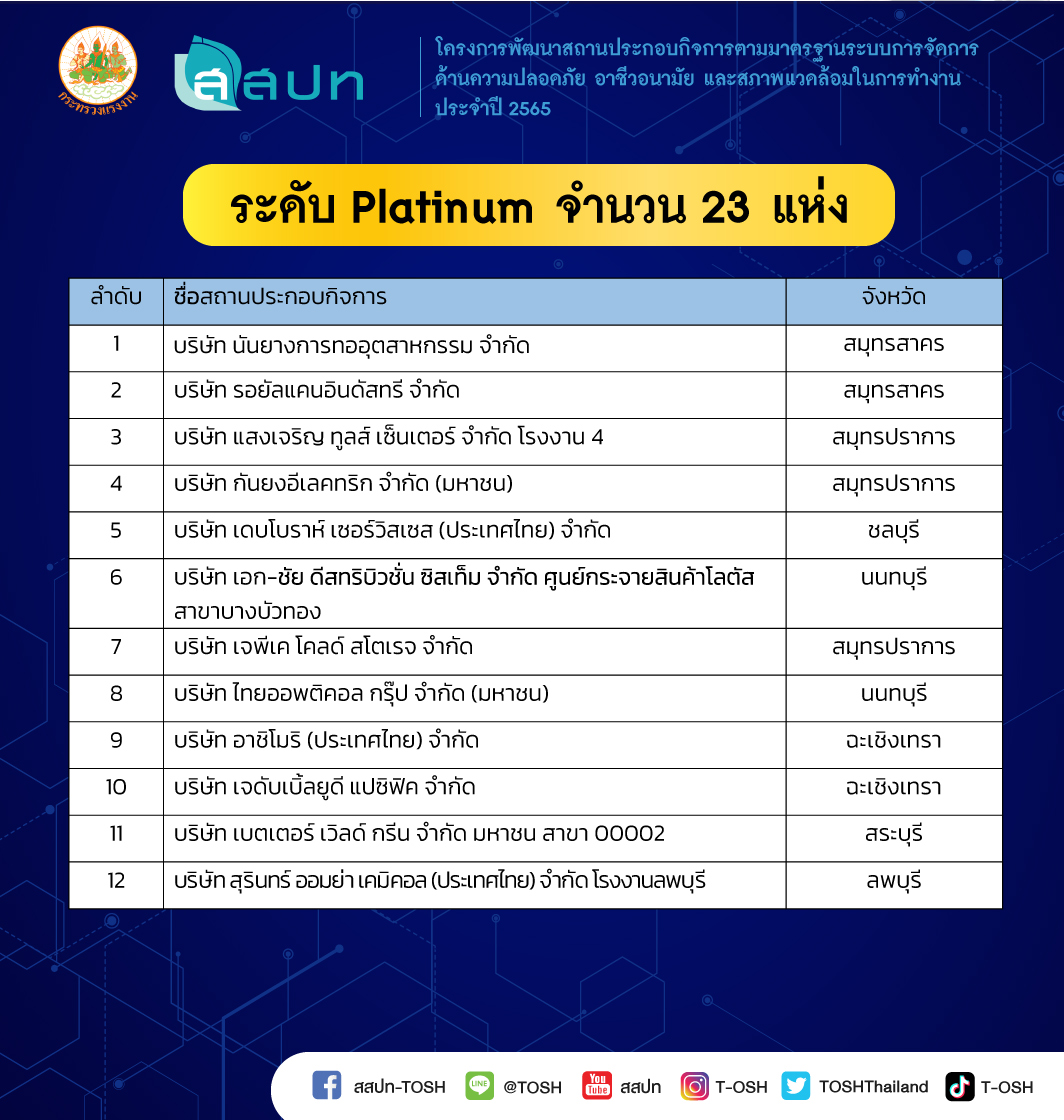 หมายเหตุ กำหนดการมอบประกาศเกียรติคุณแก่สถานประกอบกิจการ จะจัดขึ้นภายในเดือนมีนาคม 256๖ และจะแจ้งกำหนดการให้ทราบอีกครั้งในภายหลัง สามารถติดต่อสอบถามเพิ่มเติม : 061-4201372 หรืออีเมล คุณเกศสุดา รักษากุล This email address is being protected from spambots. You need JavaScript enabled to view it. หรือ คุณจิรนันทน์ อินทร์มณี This email address is being protected from spambots. You need JavaScript enabled to view it.