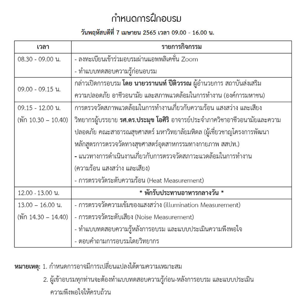 วันที่ 7 เมษายน 2565 เวลา 09.00 – 16.00 น. ผ่านแอพพลิเคชั่น Zoom Meeting