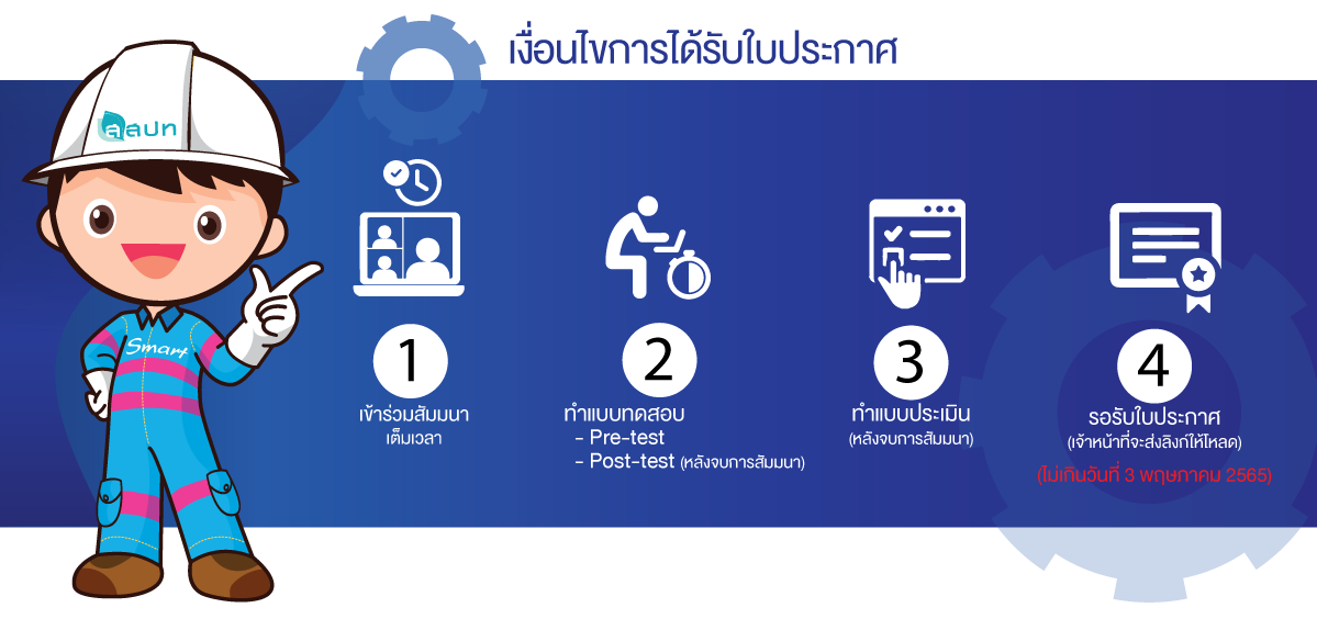 - ต้องเข้าร่วมสัมมนาตลอดวัน ทั้ง 2 หัวข้อ และทำแบบทดสอบก่อน-หลัง และแบบประเมินออนไลน์ ทันตามเวลาที่กำหนด