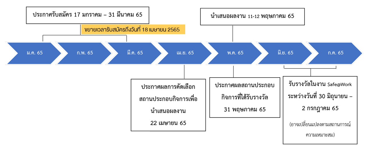 ตามที่สถาบันส่งเสริมความปลอดภัย อาชีวอนามัย และสภาพแวดล้อมในการทำงาน (องค์การมหาชน) ได้ประชาสัมพันธ์เชิญชวนสถานประกอบกิจการ เจ้าหน้าที่ความปลอดภัยในการทำงาน สถาบันการศึกษา หรือหน่วยงานทั้งภาครัฐและเอกชนที่สนใจ ร่วมส่งผลงานเข้าร่วมพิจารณาโครงงานพัฒนานวัตกรรมด้านความปลอดภัยและอาชีวอนามัย ชิงเงินรางวัลและโล่ประกาศเกียรติคุณ เพื่อส่งเสริมการแลกเปลี่ยนองค์ความรู้เกี่ยวกับนวัตกรรม สิ่งประดิษฐ์ด้านความปลอดภัยและอาชีวอนามัยของประเทศ และได้ปิดรับสมัครไปแล้วเมื่อวันที่ 18 เมษายน 2565
