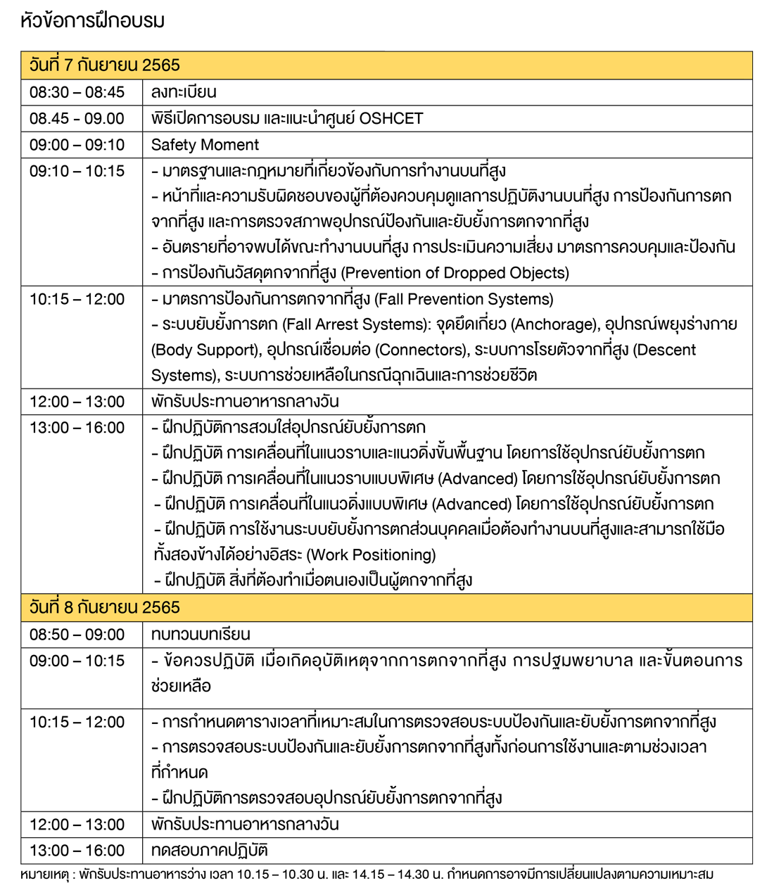 - วันที่ 7-8 กันยายน 2565 (ฝึกอบรมทั้งภาคทฤษฎีและปฏิบัติเป็นเวลา 2 วัน)