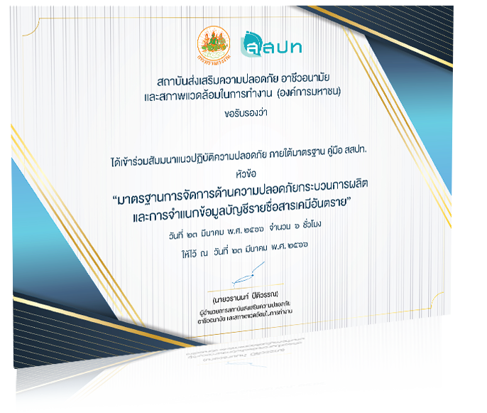 หัวข้อ : มาตรฐานการจัดการด้านความปลอดภัยกระบวนการผลิตและการจำแนกข้อมูลบัญชีรายชื่อสารเคมีอันตราย