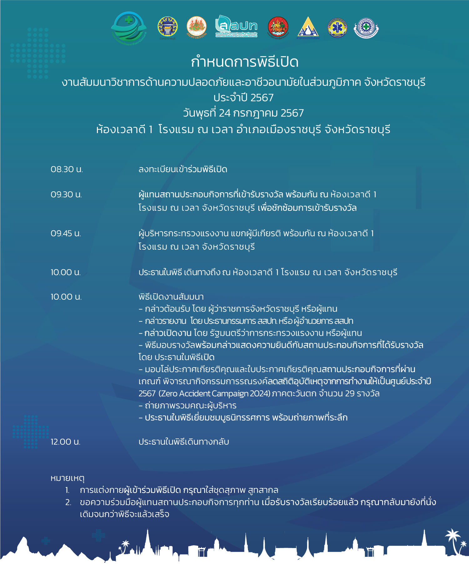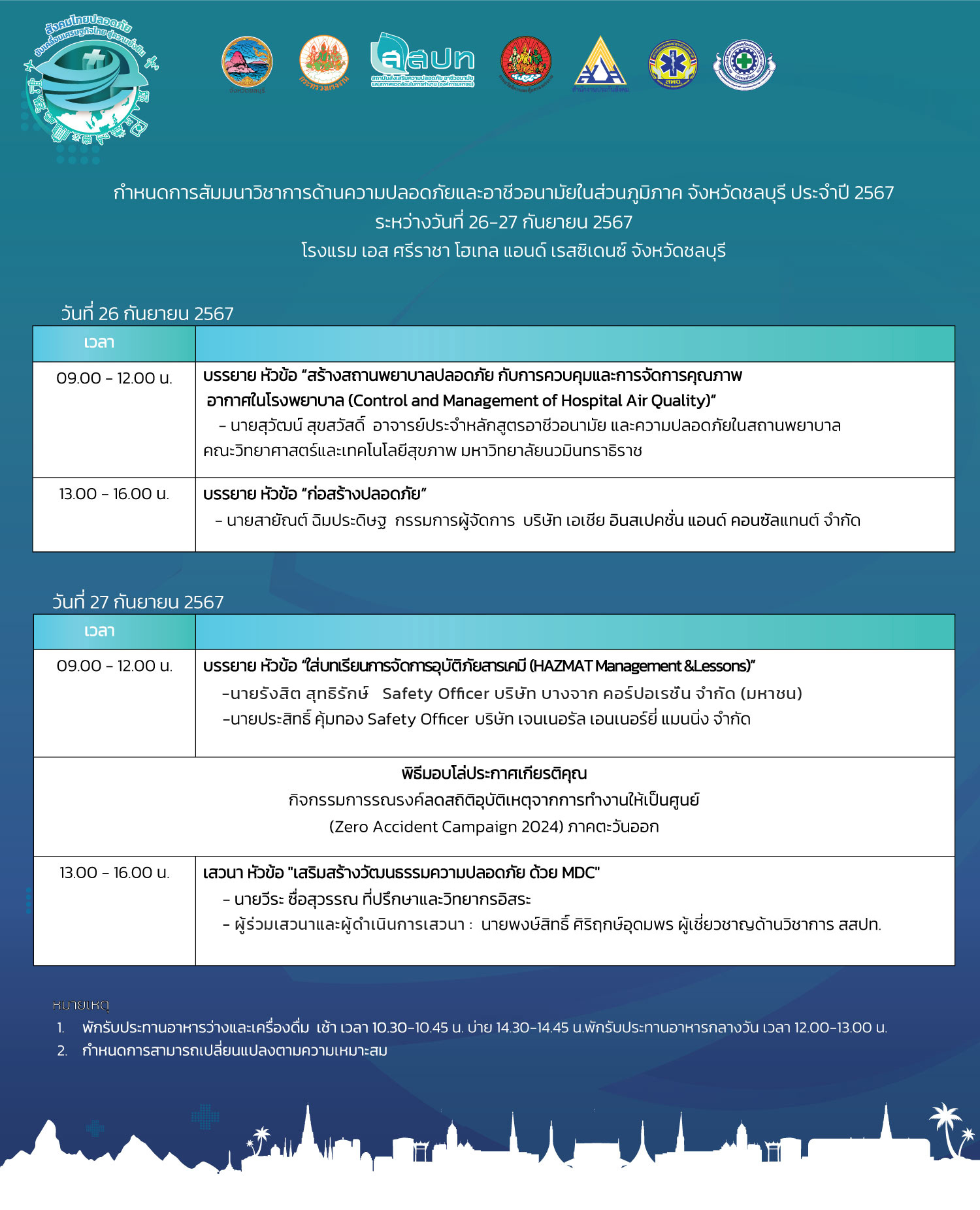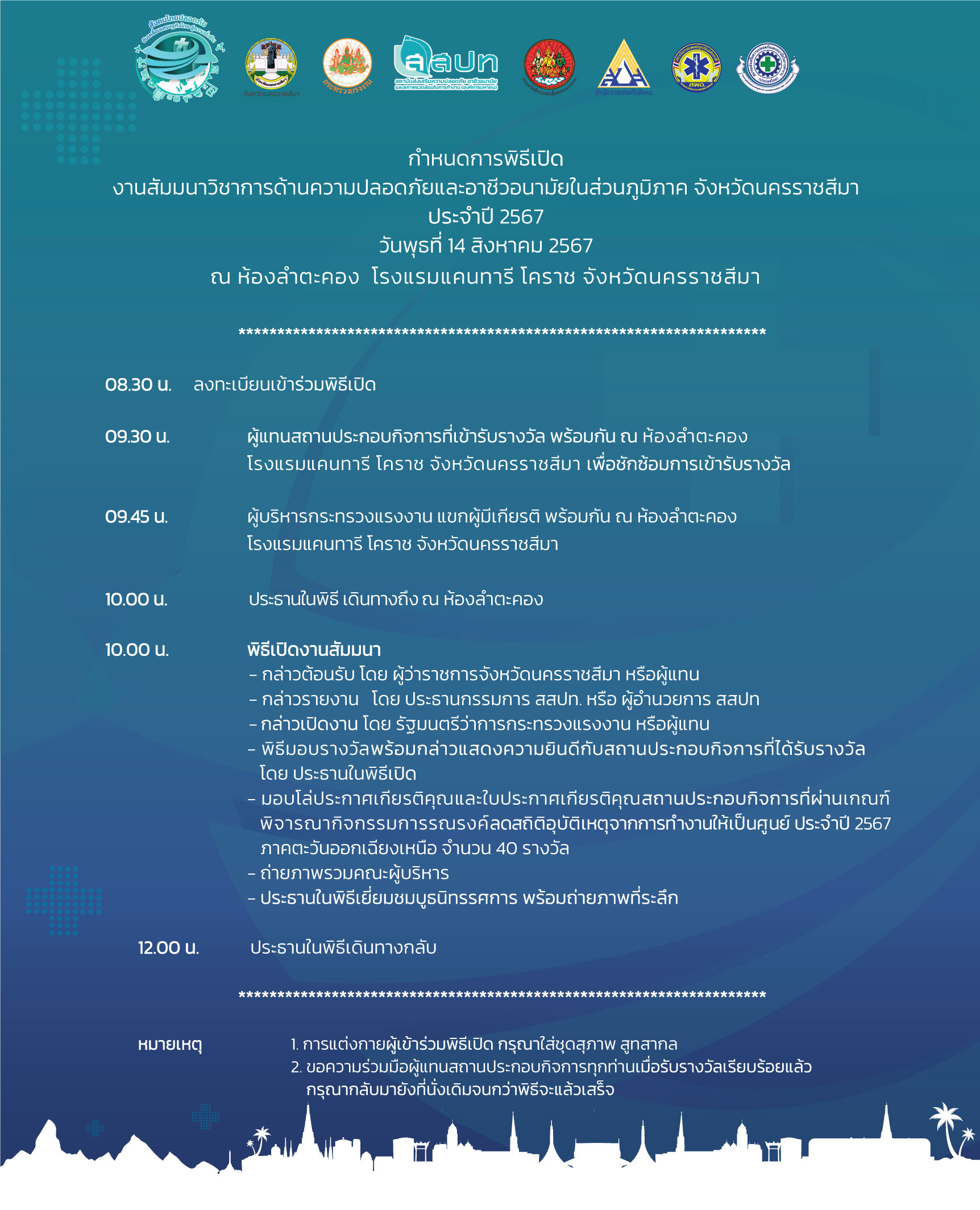 • ผู้เข้าสัมมนาต้องเข้าร่วมพิธีเปิดในช่วงเช้าด้วย